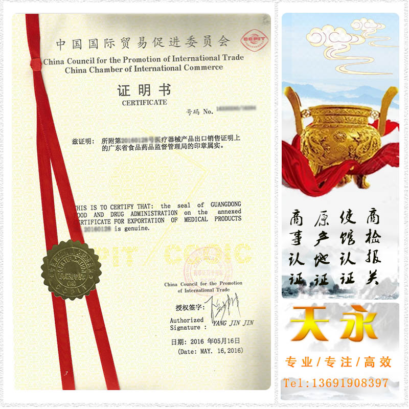 自由销售证书有2种,如果是做检测机构出具的,例如是食品药品监督局,需要贵司自己先到当地的食品药品监督管理局申请,申请下来之后,再把证书邮寄给我,或者给我扫描件(可以认证复印件),我司收到文件之后再帮您送CCPIT商会认证;